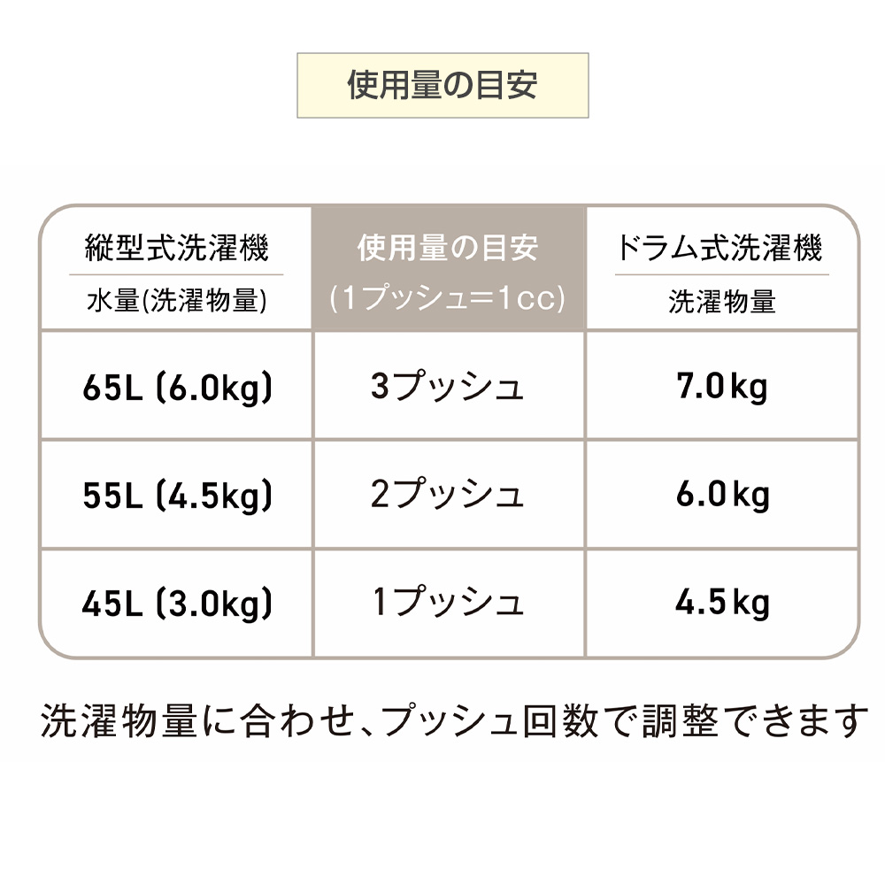洗濯物量に合わせ、プッシュ回数で調整できます