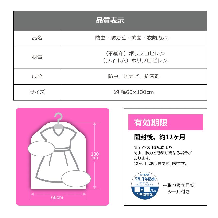 日本製 防虫・防カビ・抗菌 衣類カバー ドレス・ワンピース用